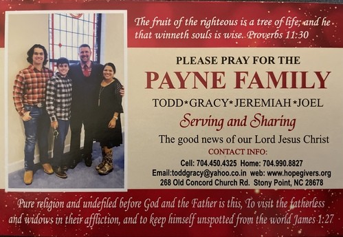 We are blessed to support Brother Todd Payne in his mission work through Hopegivers International.